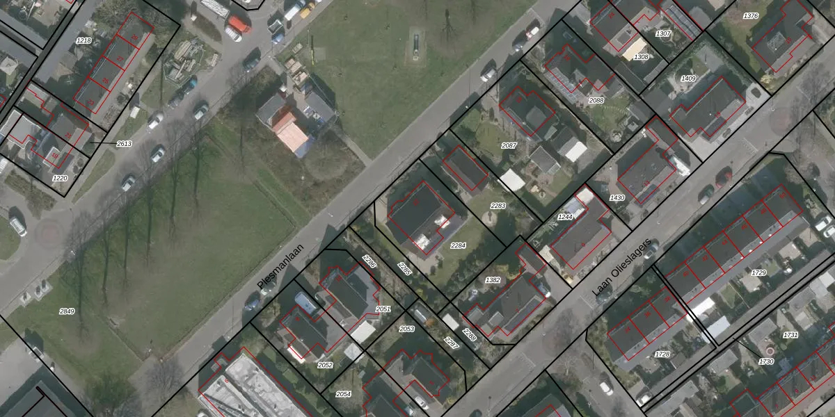Gebruik de zoekbalk of klik op een perceel voor informatie over de adressen binnen dit perceel.