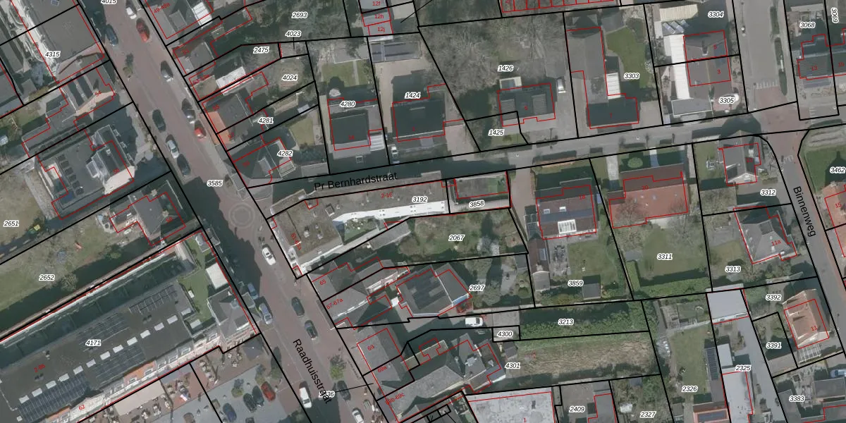 Het perceel waarop Pr Bernhardstraat 16 staat heeft een oppervlakte van 511 m². Dit is een groot perceel. De perceeloppervlakte wordt geregistreerd door het Kadaster. Gedetailleerde informatie over de maten van dit perceel kunt u vinden in het rapport Kadastrale kaart met maatvoering van Pr Bernhardstraat 16.