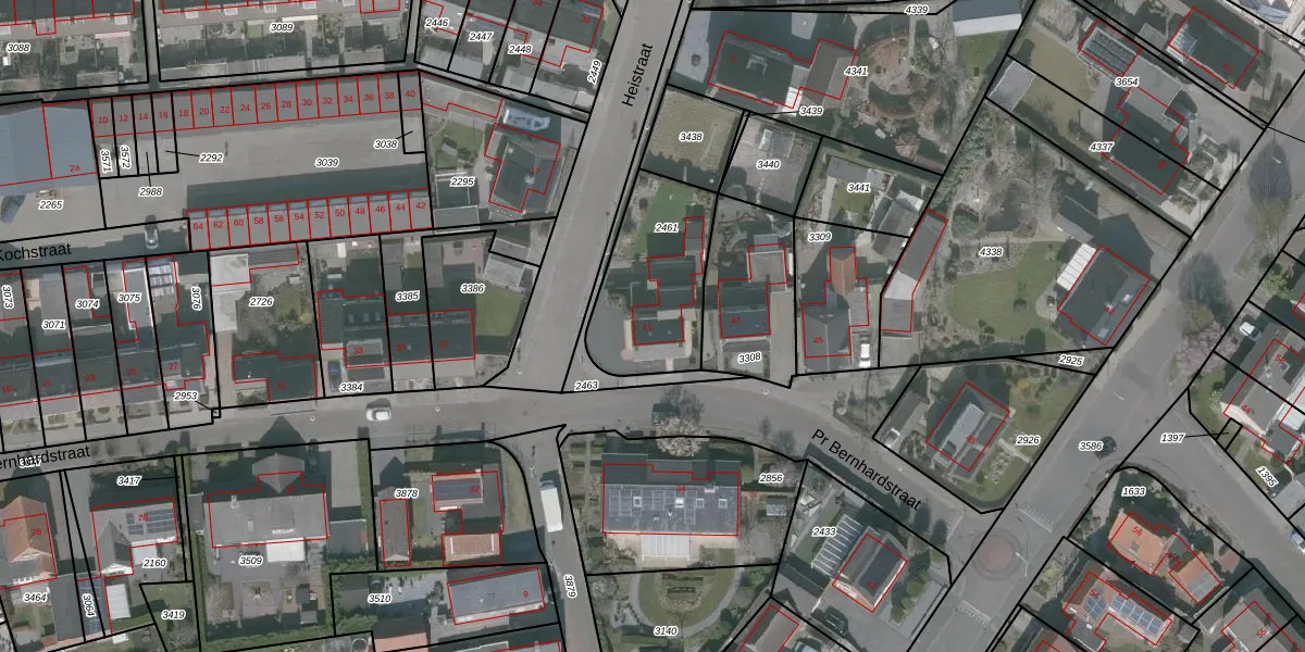 Het perceel waarop Pr Bernhardstraat 41 staat heeft een oppervlakte van 457 m². Dit is een groot perceel. De perceeloppervlakte wordt geregistreerd door het Kadaster. Gedetailleerde informatie over de maten van dit perceel kunt u vinden in het rapport Kadastrale kaart met maatvoering van Pr Bernhardstraat 41.