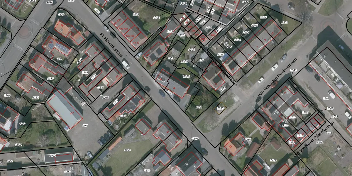 Pr Hendrikstraat 36 is gelegen op kadastraal perceel WDT00C2302. Deze kadastrale aanduiding is uniek en wordt gebruikt door het Kadaster om eigendomsrechten en andere zakelijke rechten vast te leggen. Het perceel maakt onderdeel uit van de kadastrale gemeente Woensdrecht.