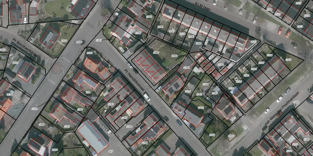 Het perceel waarop Pr Hendrikstraat 40 staat heeft een oppervlakte van 560 m². Dit is een groot perceel. De perceeloppervlakte wordt geregistreerd door het Kadaster. Gedetailleerde informatie over de maten van dit perceel kunt u vinden in het rapport Kadastrale kaart met maatvoering van Pr Hendrikstraat 40.