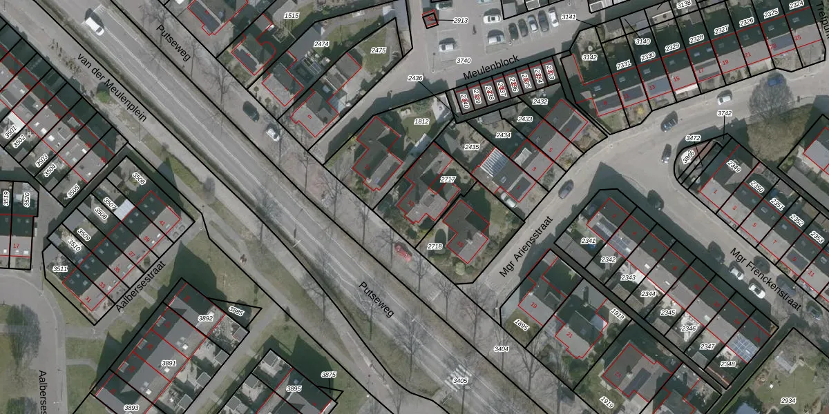 Gebruik de zoekbalk of klik op een perceel voor informatie over de adressen binnen dit perceel.