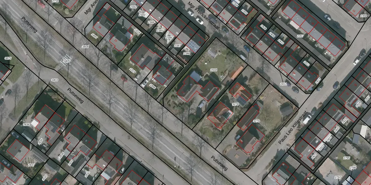 Het perceel waarop Putseweg 27 staat heeft een oppervlakte van 1064 m². Dit is een zeer groot perceel. De perceeloppervlakte wordt geregistreerd door het Kadaster. Gedetailleerde informatie over de maten van dit perceel kunt u vinden in het rapport Kadastrale kaart met maatvoering van Putseweg 27.