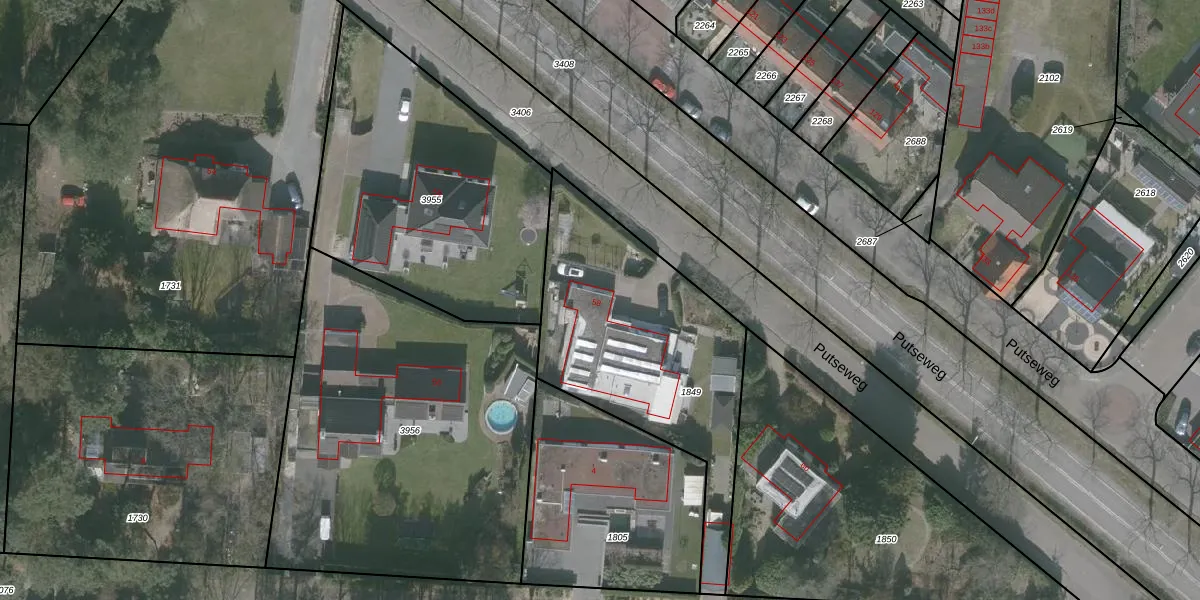 Het perceel waarop Putseweg 58 staat heeft een oppervlakte van 1115 m². Dit is een zeer groot perceel. De perceeloppervlakte wordt geregistreerd door het Kadaster. Gedetailleerde informatie over de maten van dit perceel kunt u vinden in het rapport Kadastrale kaart met maatvoering van Putseweg 58.