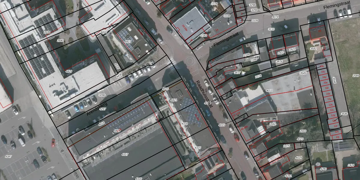 Raadhuisstraat 44-b is gelegen op kadastraal perceel WDT00B4421. Deze kadastrale aanduiding is uniek en wordt gebruikt door het Kadaster om eigendomsrechten en andere zakelijke rechten vast te leggen. Het perceel maakt onderdeel uit van de kadastrale gemeente Woensdrecht.