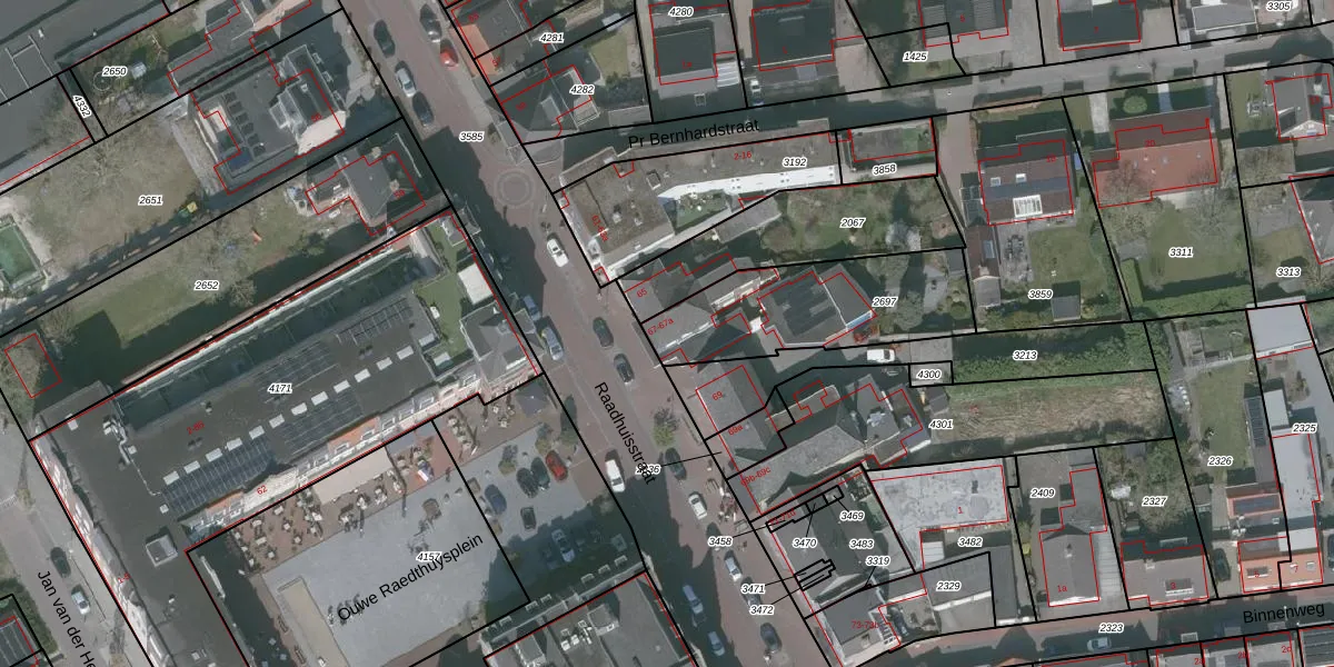 Het perceel waarop Raadhuisstraat 67-a staat heeft een oppervlakte van 595 m². Dit is een groot perceel. De perceeloppervlakte wordt geregistreerd door het Kadaster. Gedetailleerde informatie over de maten van dit perceel kunt u vinden in het rapport Kadastrale kaart met maatvoering van Raadhuisstraat 67-a.