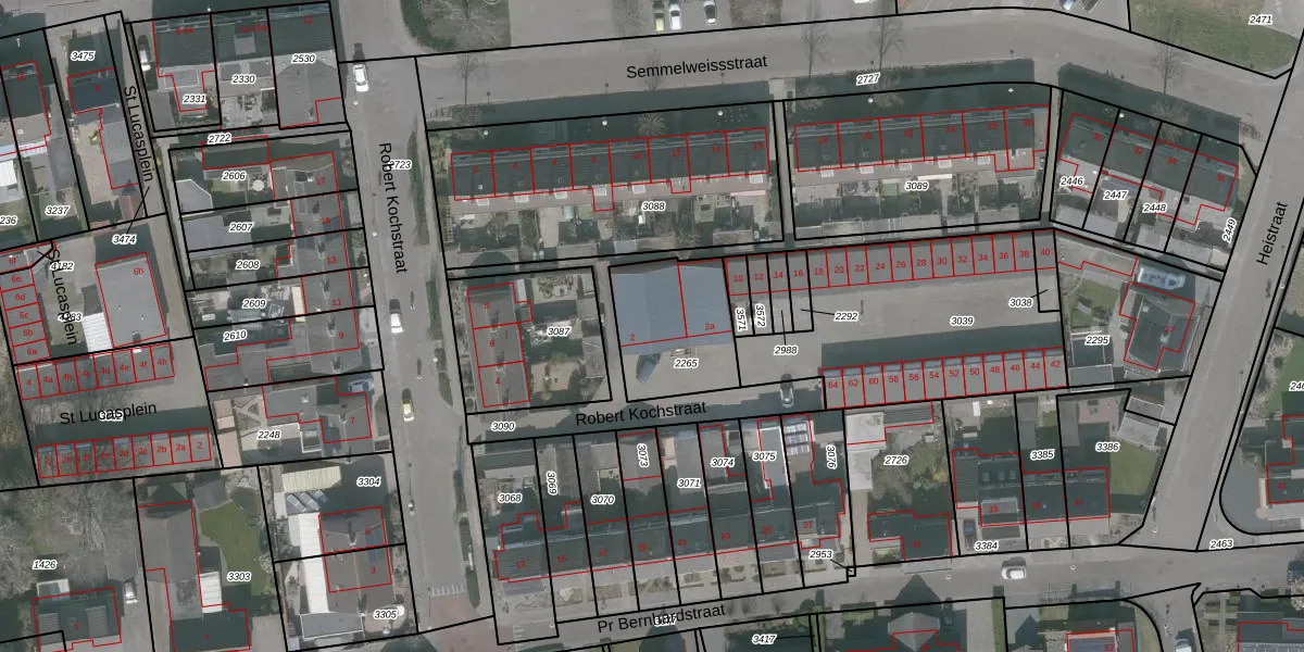 Het perceel waarop Robert Kochstraat 2 staat heeft een oppervlakte van 365 m². Dit is een groot perceel. De perceeloppervlakte wordt geregistreerd door het Kadaster. Gedetailleerde informatie over de maten van dit perceel kunt u vinden in het rapport Kadastrale kaart met maatvoering van Robert Kochstraat 2.