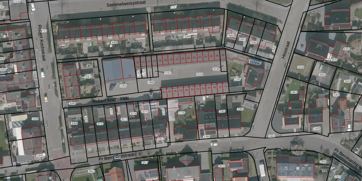 Het perceel waarop Robert Kochstraat 58 staat heeft een oppervlakte van 984 m². Dit is een groot perceel. De perceeloppervlakte wordt geregistreerd door het Kadaster. Gedetailleerde informatie over de maten van dit perceel kunt u vinden in het rapport Kadastrale kaart met maatvoering van Robert Kochstraat 58.