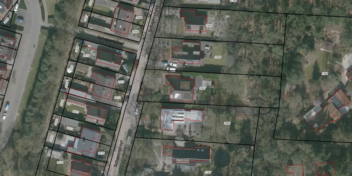 Gebruik de zoekbalk of klik op een perceel voor informatie over de adressen binnen dit perceel.