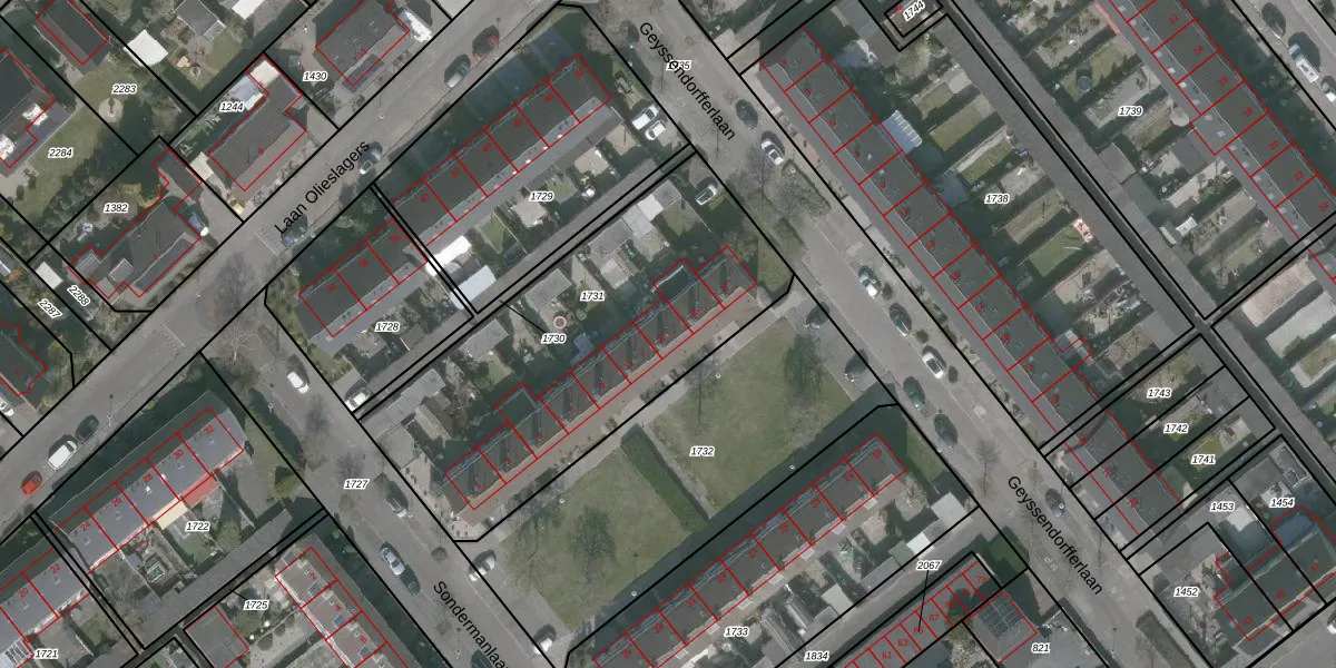 Het perceel waarop Sondermanlaan 13 staat heeft een oppervlakte van 1620 m². Dit is een zeer groot perceel. De perceeloppervlakte wordt geregistreerd door het Kadaster. Gedetailleerde informatie over de maten van dit perceel kunt u vinden in het rapport Kadastrale kaart met maatvoering van Sondermanlaan 13.