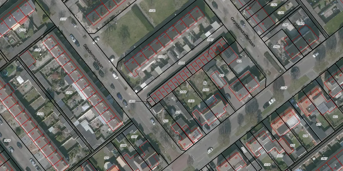 Het perceel waarop Sondermanlaan 47 staat heeft een oppervlakte van 196 m². Dit is een middelgroot perceel. De perceeloppervlakte wordt geregistreerd door het Kadaster. Gedetailleerde informatie over de maten van dit perceel kunt u vinden in het rapport Kadastrale kaart met maatvoering van Sondermanlaan 47.