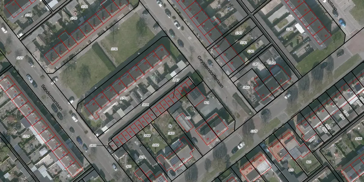 Het perceel waarop Sondermanlaan 69 staat heeft een oppervlakte van 195 m². Dit is een middelgroot perceel. De perceeloppervlakte wordt geregistreerd door het Kadaster. Gedetailleerde informatie over de maten van dit perceel kunt u vinden in het rapport Kadastrale kaart met maatvoering van Sondermanlaan 69.