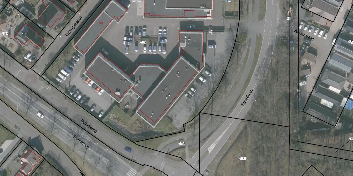 Het perceel waarop Sportlaan 8-d-A staat heeft een oppervlakte van 7480 m². Dit is een zeer groot perceel. De perceeloppervlakte wordt geregistreerd door het Kadaster. Gedetailleerde informatie over de maten van dit perceel kunt u vinden in het rapport Kadastrale kaart met maatvoering van Sportlaan 8-d-A.