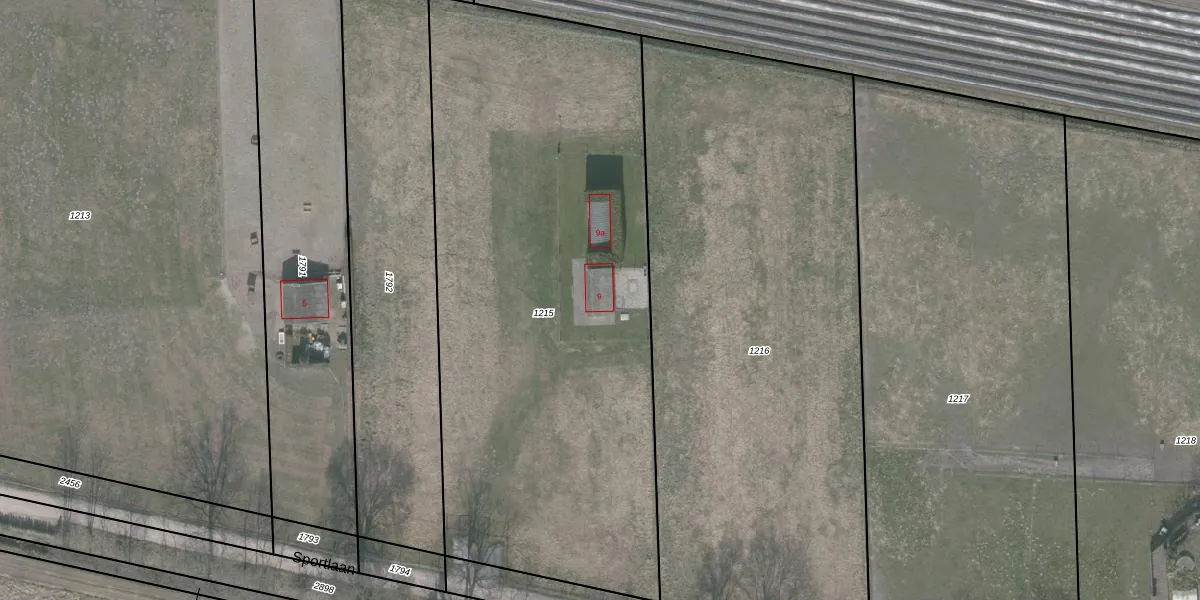 Sportlaan 9 is gelegen op kadastraal perceel WDT00D1215. Deze kadastrale aanduiding is uniek en wordt gebruikt door het Kadaster om eigendomsrechten en andere zakelijke rechten vast te leggen. Het perceel maakt onderdeel uit van de kadastrale gemeente Woensdrecht.