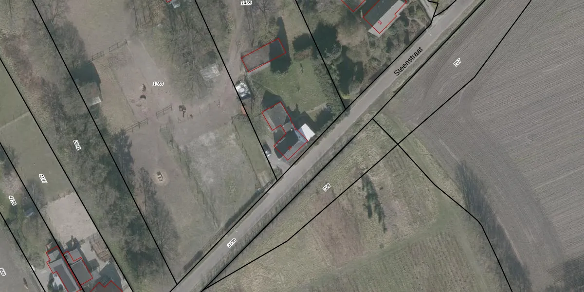 Het perceel waarop Steenstraat 26 staat heeft een oppervlakte van 3240 m². Dit is een zeer groot perceel. De perceeloppervlakte wordt geregistreerd door het Kadaster. Gedetailleerde informatie over de maten van dit perceel kunt u vinden in het rapport Kadastrale kaart met maatvoering van Steenstraat 26.
