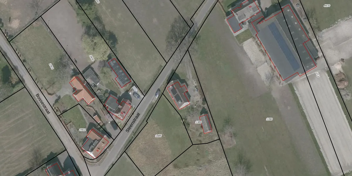 Steenstraat 5 is gelegen op kadastraal perceel WDT00G1389. Deze kadastrale aanduiding is uniek en wordt gebruikt door het Kadaster om eigendomsrechten en andere zakelijke rechten vast te leggen. Het perceel maakt onderdeel uit van de kadastrale gemeente Woensdrecht.
