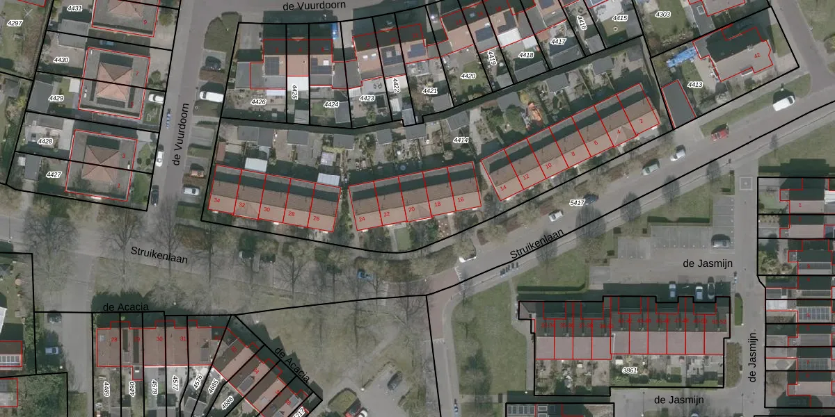 Struikenlaan 20 is gelegen op kadastraal perceel WDT00G4414. Deze kadastrale aanduiding is uniek en wordt gebruikt door het Kadaster om eigendomsrechten en andere zakelijke rechten vast te leggen. Het perceel maakt onderdeel uit van de kadastrale gemeente Woensdrecht.