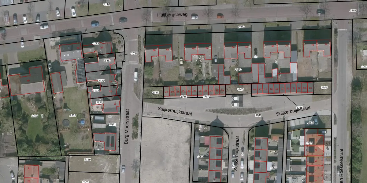 Suijkerbuijkstraat 2-j is gelegen op kadastraal perceel WDT00D3945. Deze kadastrale aanduiding is uniek en wordt gebruikt door het Kadaster om eigendomsrechten en andere zakelijke rechten vast te leggen. Het perceel maakt onderdeel uit van de kadastrale gemeente Woensdrecht.