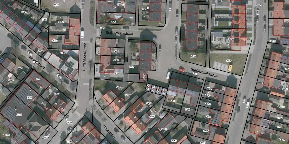 Suijkerbuijkstraat 44-a is gelegen op kadastraal perceel WDT00D2678. Deze kadastrale aanduiding is uniek en wordt gebruikt door het Kadaster om eigendomsrechten en andere zakelijke rechten vast te leggen. Het perceel maakt onderdeel uit van de kadastrale gemeente Woensdrecht.