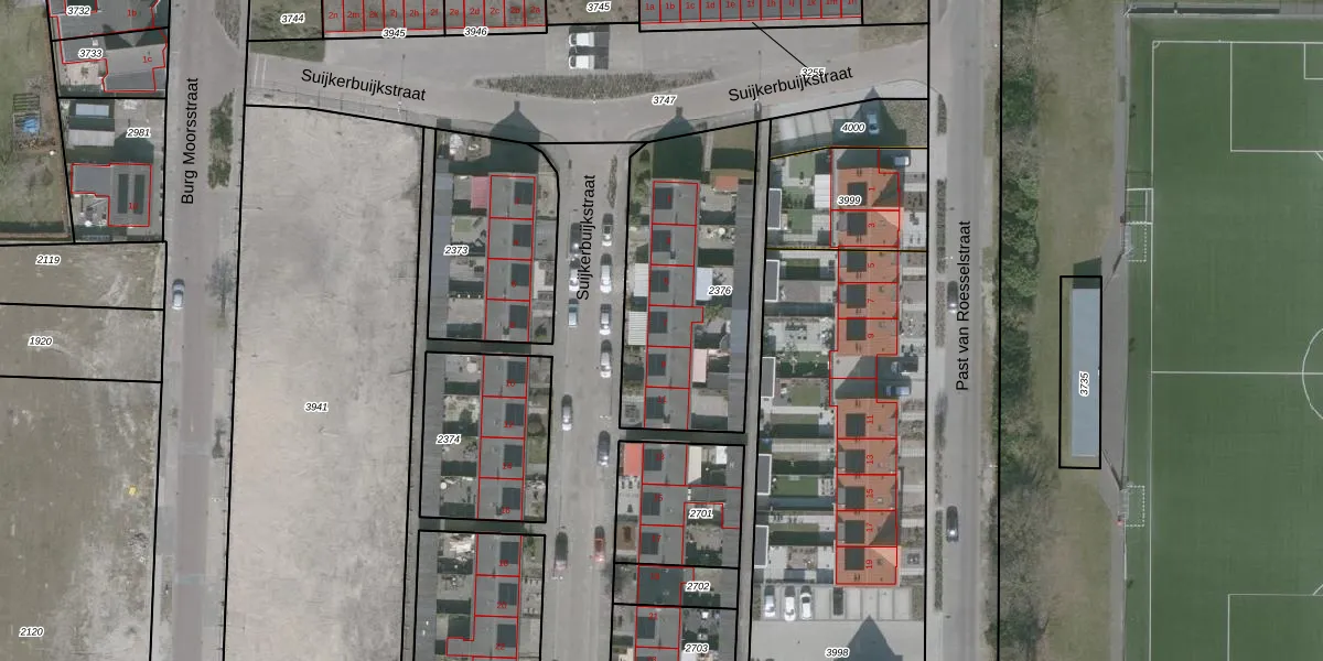 Het perceel waarop Suijkerbuijkstraat 7 staat heeft een oppervlakte van 863 m². Dit is een groot perceel. De perceeloppervlakte wordt geregistreerd door het Kadaster. Gedetailleerde informatie over de maten van dit perceel kunt u vinden in het rapport Kadastrale kaart met maatvoering van Suijkerbuijkstraat 7.