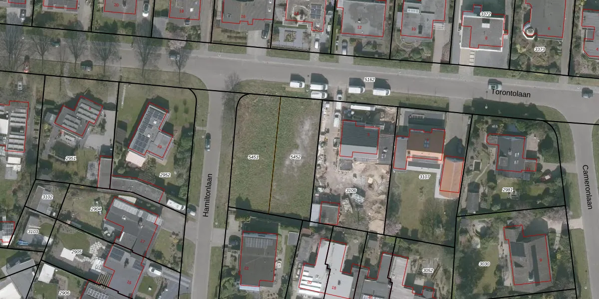 Het perceel waarop Torontolaan 5 staat heeft een oppervlakte van 587 m². Dit is een groot perceel. De perceeloppervlakte wordt geregistreerd door het Kadaster. Gedetailleerde informatie over de maten van dit perceel kunt u vinden in het rapport Kadastrale kaart met maatvoering van Torontolaan 5.