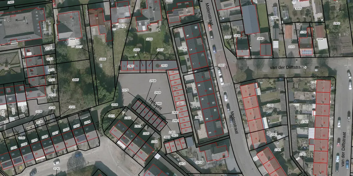 Het perceel waarop Trefpunt 21 staat heeft een oppervlakte van 255 m². Dit is een middelgroot perceel. De perceeloppervlakte wordt geregistreerd door het Kadaster. Gedetailleerde informatie over de maten van dit perceel kunt u vinden in het rapport Kadastrale kaart met maatvoering van Trefpunt 21.
