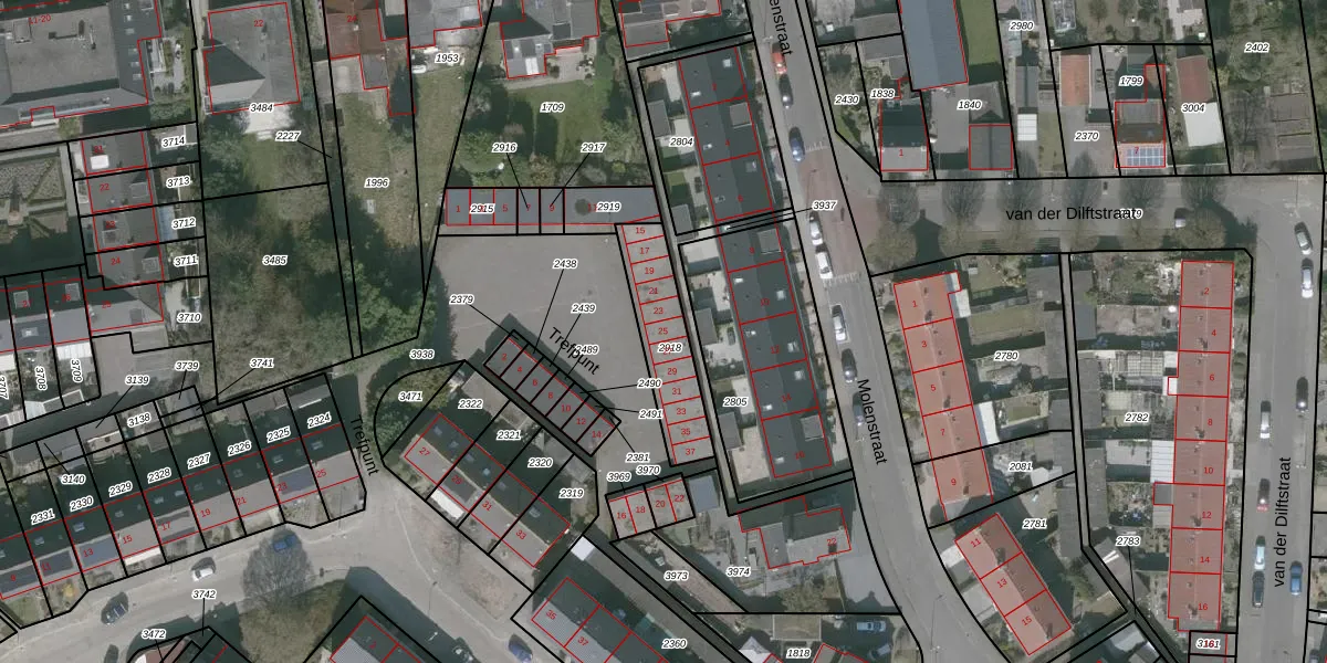 Het perceel waarop Trefpunt 25 staat heeft een oppervlakte van 255 m². Dit is een middelgroot perceel. De perceeloppervlakte wordt geregistreerd door het Kadaster. Gedetailleerde informatie over de maten van dit perceel kunt u vinden in het rapport Kadastrale kaart met maatvoering van Trefpunt 25.