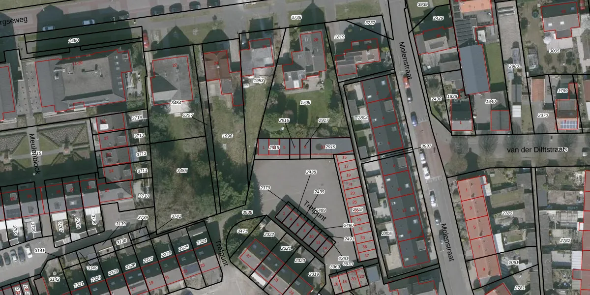 Gebruik de zoekbalk of klik op een perceel voor informatie over de adressen binnen dit perceel.