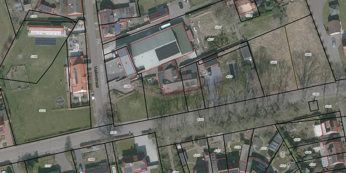 Het perceel waarop Valkestraat 4-a staat heeft een oppervlakte van 3344 m². Dit is een zeer groot perceel. De perceeloppervlakte wordt geregistreerd door het Kadaster. Gedetailleerde informatie over de maten van dit perceel kunt u vinden in het rapport Kadastrale kaart met maatvoering van Valkestraat 4-a.