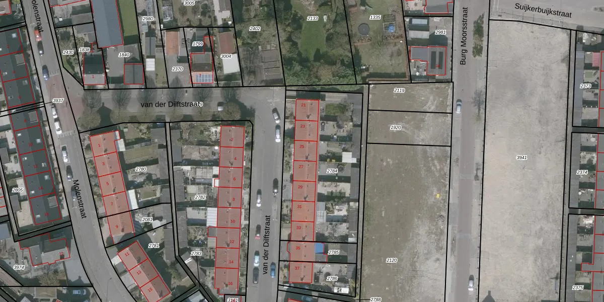 van der Dilftstraat 25 is gelegen op kadastraal perceel WDT00D2784. Deze kadastrale aanduiding is uniek en wordt gebruikt door het Kadaster om eigendomsrechten en andere zakelijke rechten vast te leggen. Het perceel maakt onderdeel uit van de kadastrale gemeente Woensdrecht.