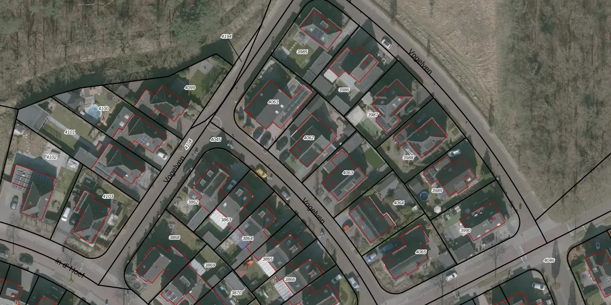 Het perceel waarop Vogelven 20 staat heeft een oppervlakte van 420 m². Dit is een groot perceel. De perceeloppervlakte wordt geregistreerd door het Kadaster. Gedetailleerde informatie over de maten van dit perceel kunt u vinden in het rapport Kadastrale kaart met maatvoering van Vogelven 20.