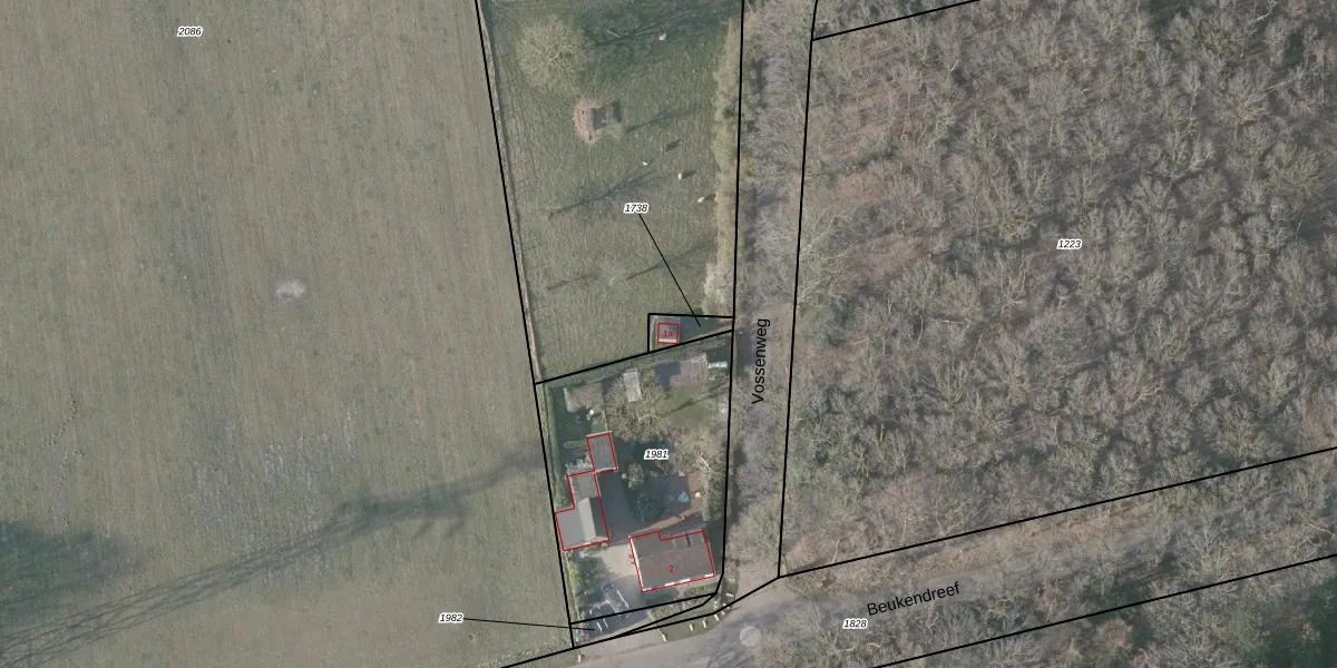 Het perceel waarop Vossenweg 1-a staat heeft een oppervlakte van 55 m². Dit is een klein perceel. De perceeloppervlakte wordt geregistreerd door het Kadaster. Gedetailleerde informatie over de maten van dit perceel kunt u vinden in het rapport Kadastrale kaart met maatvoering van Vossenweg 1-a.