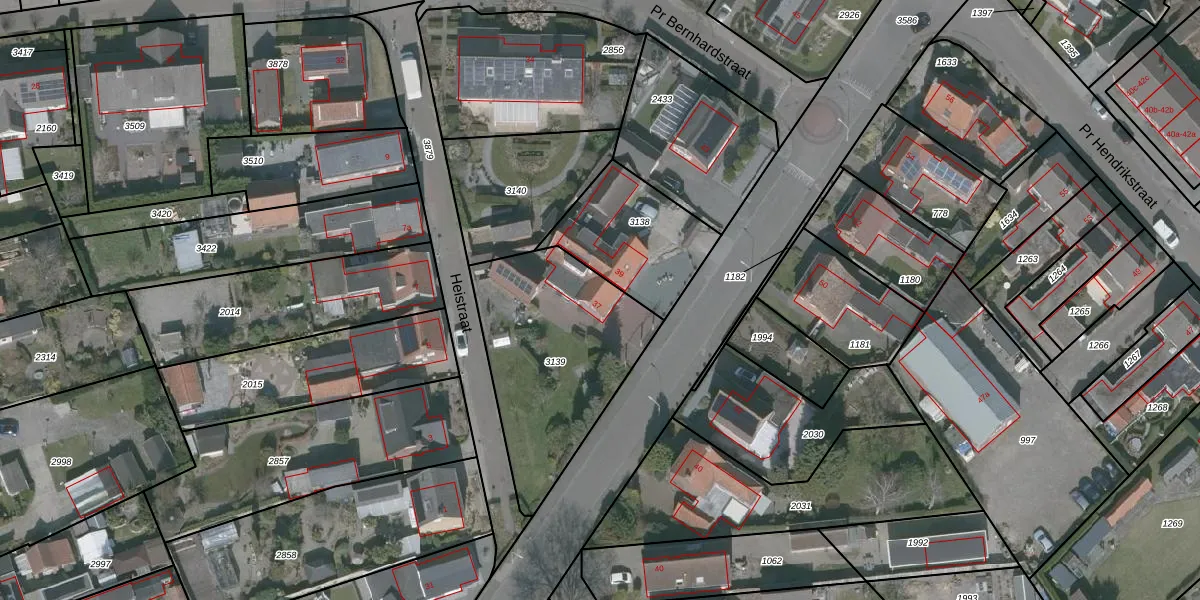 Gebruik de zoekbalk of klik op een perceel voor informatie over de adressen binnen dit perceel.
