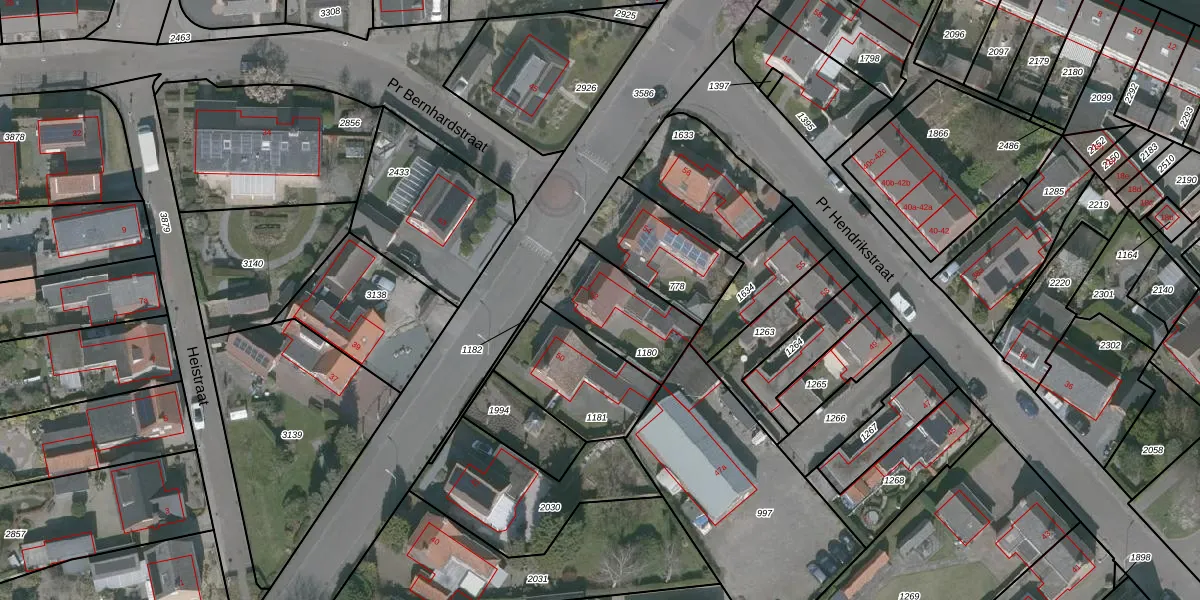Gebruik de zoekbalk of klik op een perceel voor informatie over de adressen binnen dit perceel.