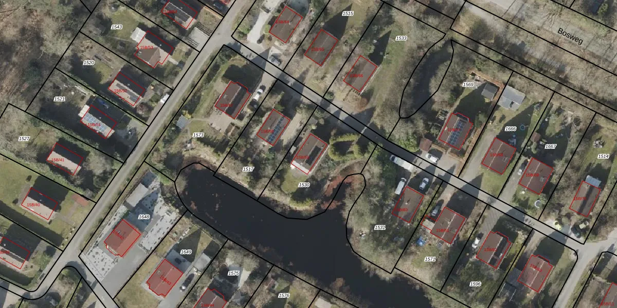 Het perceel waarop Bosweg 15-B-59 staat heeft een oppervlakte van 747 m². Dit is een groot perceel. De perceeloppervlakte wordt geregistreerd door het Kadaster. Gedetailleerde informatie over de maten van dit perceel kunt u vinden in het rapport Kadastrale kaart met maatvoering van Bosweg 15-B-59.