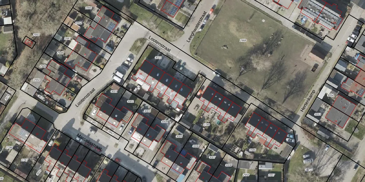 Het perceel waarop Lootenstraat 17 staat heeft een oppervlakte van 958 m². Dit is een groot perceel. De perceeloppervlakte wordt geregistreerd door het Kadaster. Gedetailleerde informatie over de maten van dit perceel kunt u vinden in het rapport Kadastrale kaart met maatvoering van Lootenstraat 17.