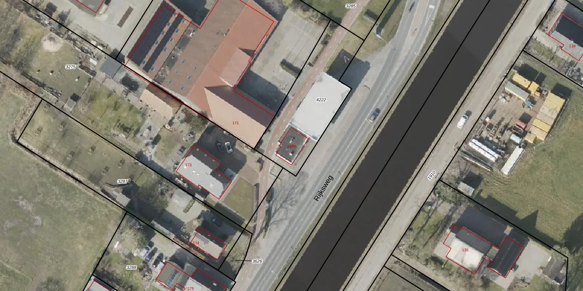 Het perceel waarop Rijksweg 169-A staat heeft een oppervlakte van 835 m². Dit is een groot perceel. De perceeloppervlakte wordt geregistreerd door het Kadaster. Gedetailleerde informatie over de maten van dit perceel kunt u vinden in het rapport Kadastrale kaart met maatvoering van Rijksweg 169-A.
