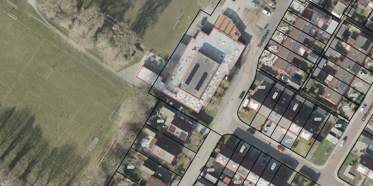 Het perceel waarop Sportlaan 2 staat heeft een oppervlakte van 1,7 ha. Dit is een zeer groot perceel. De perceeloppervlakte wordt geregistreerd door het Kadaster. Gedetailleerde informatie over de maten van dit perceel kunt u vinden in het rapport Kadastrale kaart met maatvoering van Sportlaan 2.