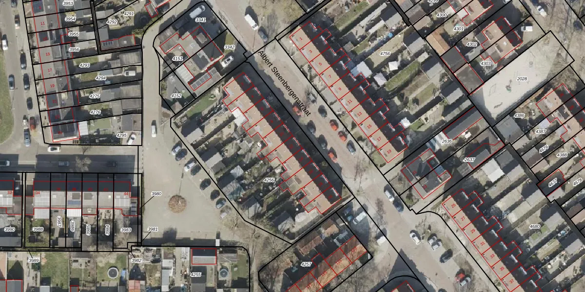 Albert Steenbergenstraat 12 is gelegen op kadastraal perceel HGV00I4256. Deze kadastrale aanduiding is uniek en wordt gebruikt door het Kadaster om eigendomsrechten en andere zakelijke rechten vast te leggen. Het perceel maakt onderdeel uit van de kadastrale gemeente Hoogeveen.