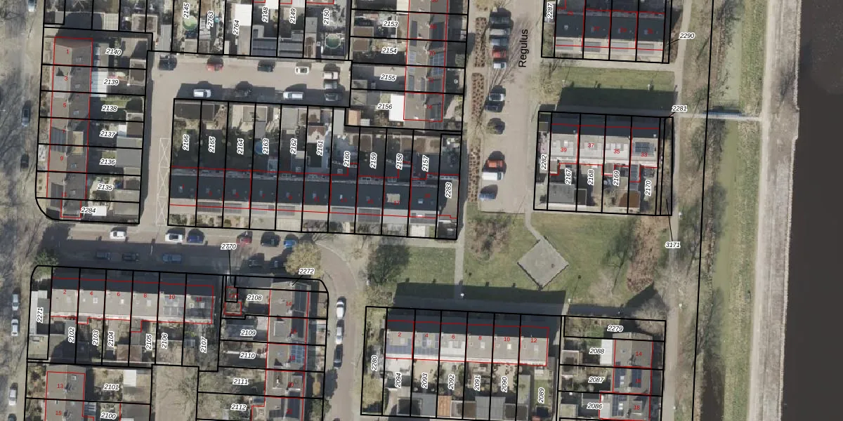 Het perceel waarop Algol 19 staat heeft een oppervlakte van 174 m². Dit is een middelgroot perceel. De perceeloppervlakte wordt geregistreerd door het Kadaster. Gedetailleerde informatie over de maten van dit perceel kunt u vinden in het rapport Kadastrale kaart met maatvoering van Algol 19.