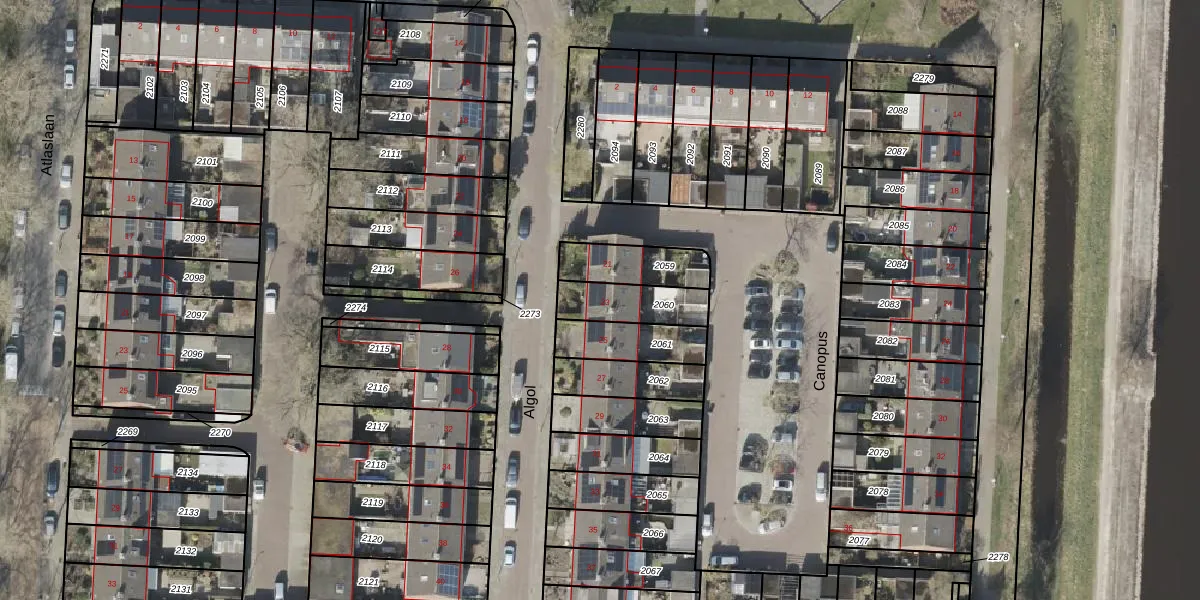 Het perceel waarop Algol 23 staat heeft een oppervlakte van 159 m². Dit is een middelgroot perceel. De perceeloppervlakte wordt geregistreerd door het Kadaster. Gedetailleerde informatie over de maten van dit perceel kunt u vinden in het rapport Kadastrale kaart met maatvoering van Algol 23.