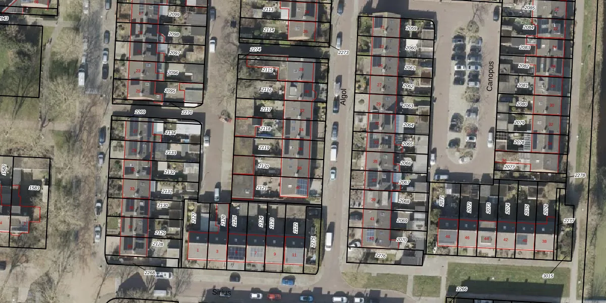 Het perceel waarop Algol 36 staat heeft een oppervlakte van 188 m². Dit is een middelgroot perceel. De perceeloppervlakte wordt geregistreerd door het Kadaster. Gedetailleerde informatie over de maten van dit perceel kunt u vinden in het rapport Kadastrale kaart met maatvoering van Algol 36.