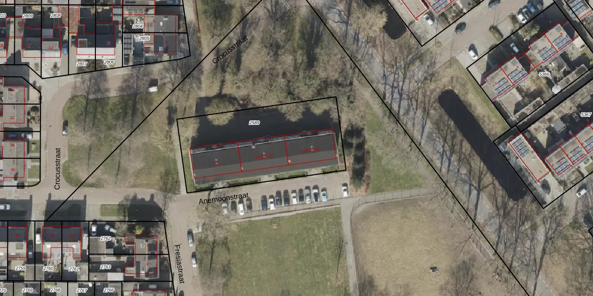 Het perceel waarop Anemoonstraat 27 staat heeft een oppervlakte van 1366 m². Dit is een zeer groot perceel. De perceeloppervlakte wordt geregistreerd door het Kadaster. Gedetailleerde informatie over de maten van dit perceel kunt u vinden in het rapport Kadastrale kaart met maatvoering van Anemoonstraat 27.