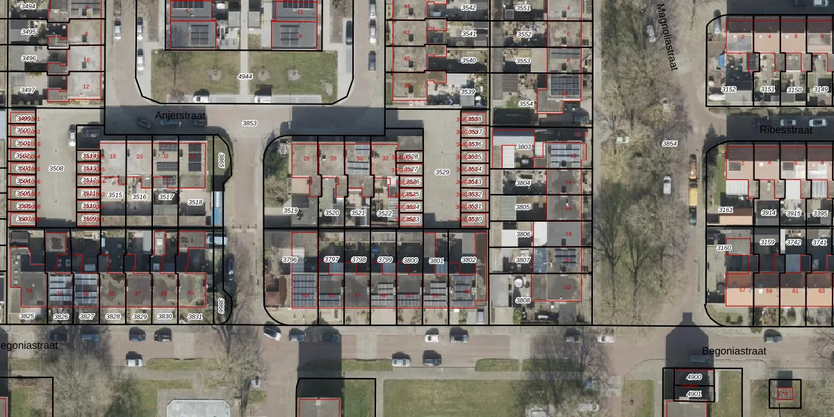 Gebruik de zoekbalk of klik op een perceel voor informatie over de adressen binnen dit perceel.