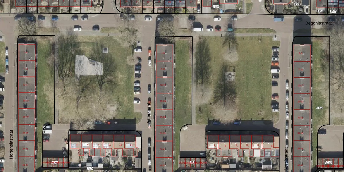 Het perceel waarop Asterstraat 17 staat heeft een oppervlakte van 3848 m². Dit is een zeer groot perceel. De perceeloppervlakte wordt geregistreerd door het Kadaster. Gedetailleerde informatie over de maten van dit perceel kunt u vinden in het rapport Kadastrale kaart met maatvoering van Asterstraat 17.