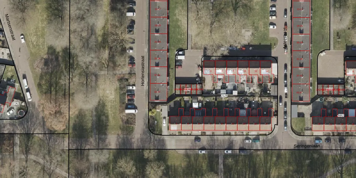 Asterstraat 2-G001 is gelegen op kadastraal perceel HGV00I2125. Deze kadastrale aanduiding is uniek en wordt gebruikt door het Kadaster om eigendomsrechten en andere zakelijke rechten vast te leggen. Het perceel maakt onderdeel uit van de kadastrale gemeente Hoogeveen.