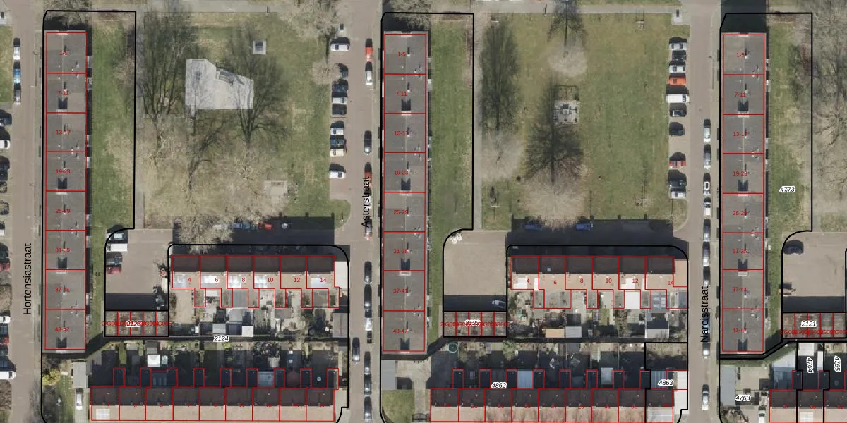 Het perceel waarop Asterstraat 29 staat heeft een oppervlakte van 3848 m². Dit is een zeer groot perceel. De perceeloppervlakte wordt geregistreerd door het Kadaster. Gedetailleerde informatie over de maten van dit perceel kunt u vinden in het rapport Kadastrale kaart met maatvoering van Asterstraat 29.