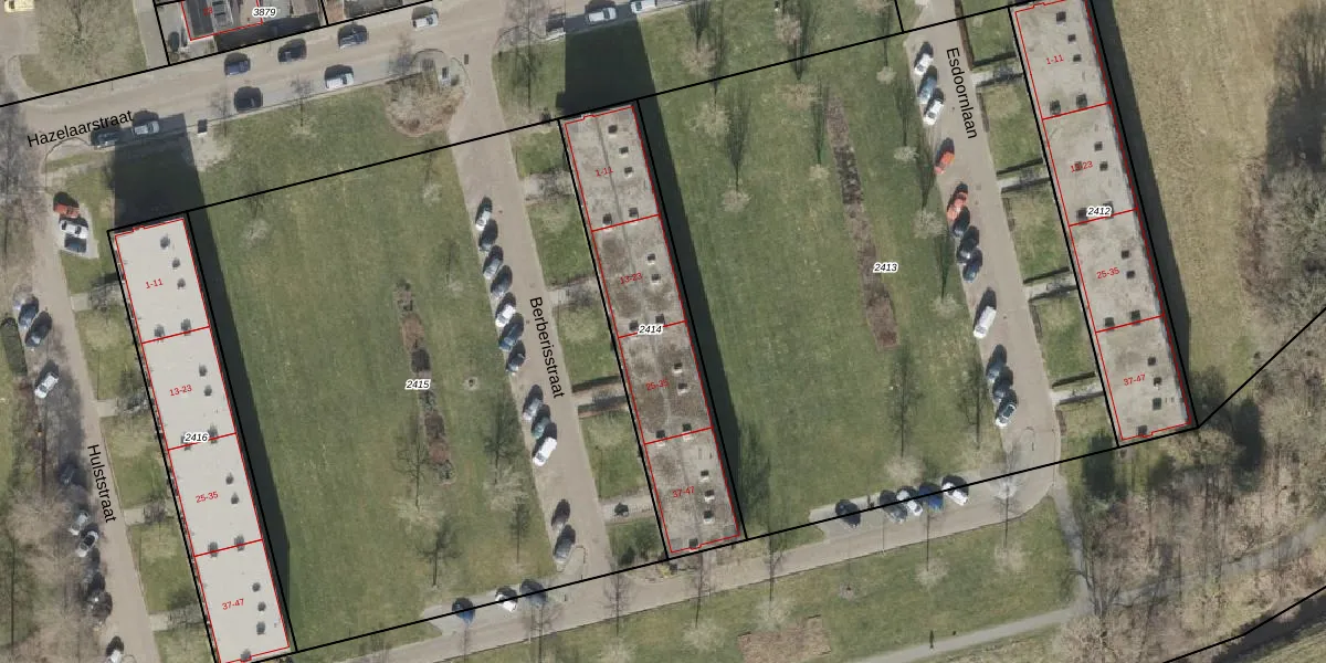 Het perceel waarop Berberisstraat 27 staat heeft een oppervlakte van 845 m². Dit is een groot perceel. De perceeloppervlakte wordt geregistreerd door het Kadaster. Gedetailleerde informatie over de maten van dit perceel kunt u vinden in het rapport Kadastrale kaart met maatvoering van Berberisstraat 27.