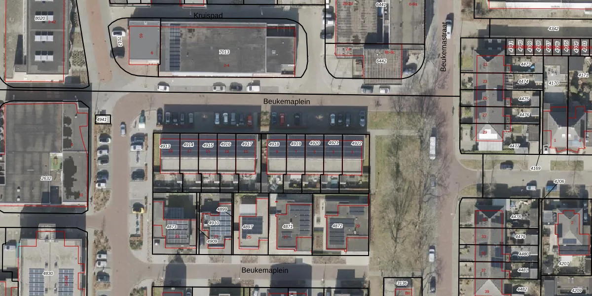 Beukemaplein 7 is gelegen op kadastraal perceel HGV00I4919. Deze kadastrale aanduiding is uniek en wordt gebruikt door het Kadaster om eigendomsrechten en andere zakelijke rechten vast te leggen. Het perceel maakt onderdeel uit van de kadastrale gemeente Hoogeveen.