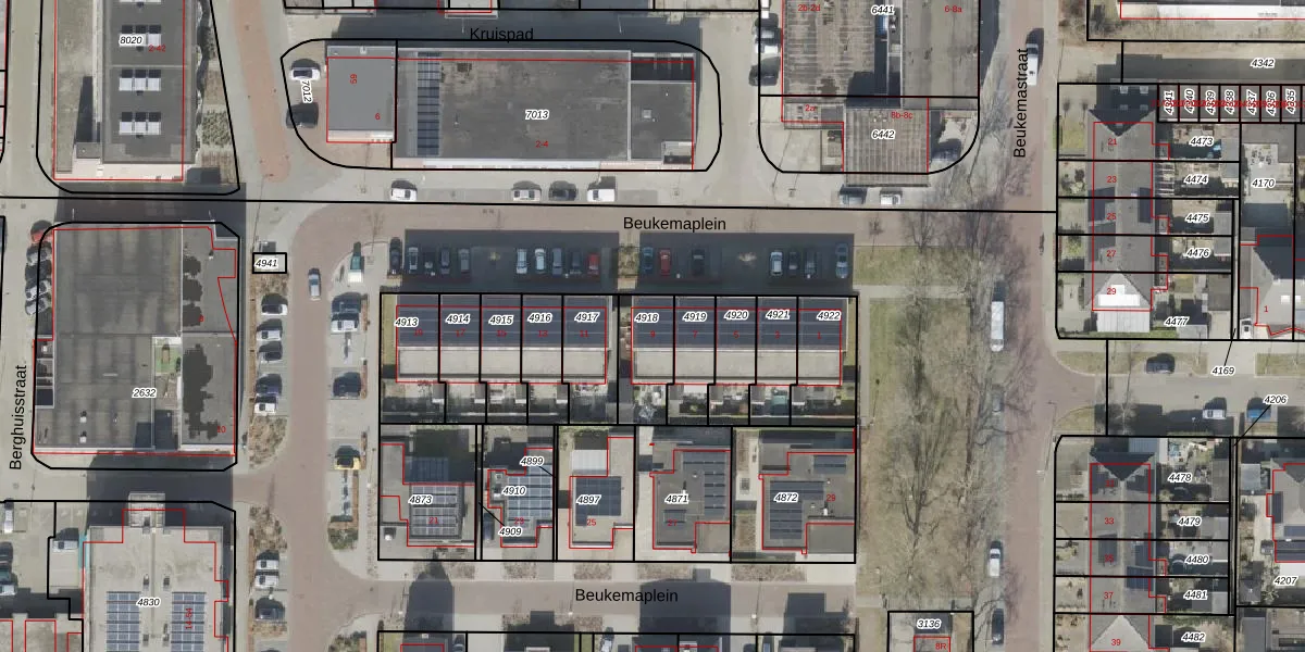 Beukemaplein 9 is gelegen op kadastraal perceel HGV00I4918. Deze kadastrale aanduiding is uniek en wordt gebruikt door het Kadaster om eigendomsrechten en andere zakelijke rechten vast te leggen. Het perceel maakt onderdeel uit van de kadastrale gemeente Hoogeveen.